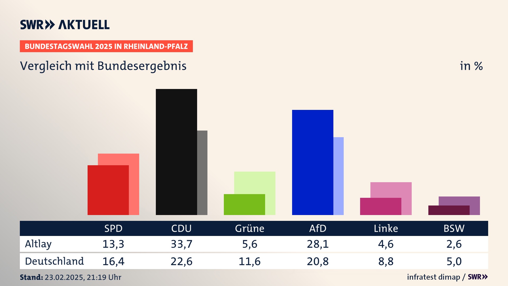 Ergebnis der Bundestagswahl 2025 für Altlay