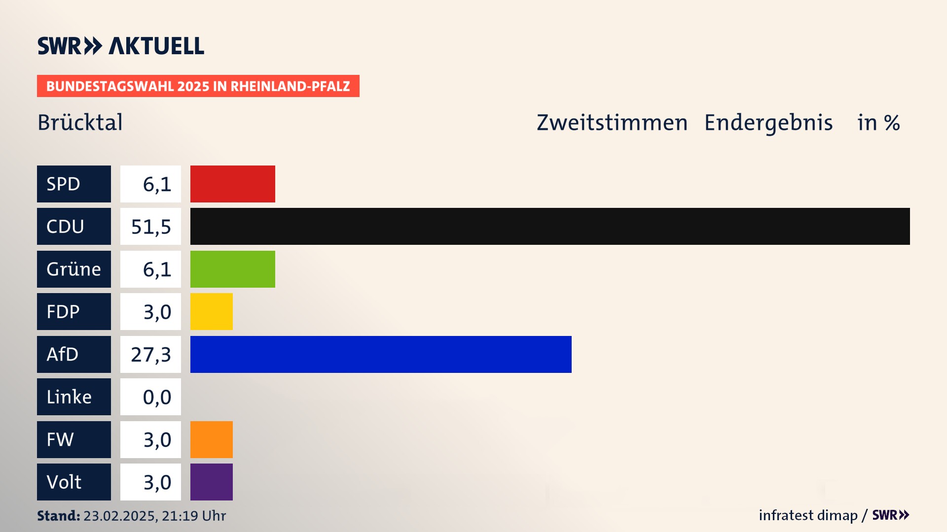 Ergebnis der Bundestagswahl 2025 für Brücktal