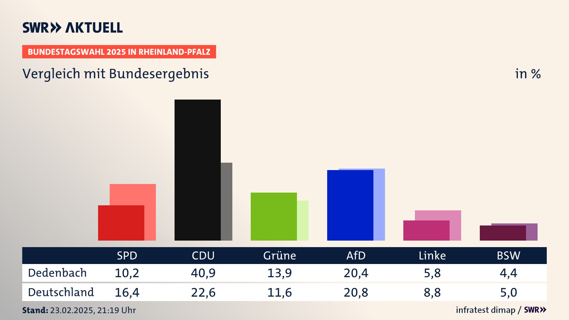 Ergebnis der Bundestagswahl 2025 für Dedenbach