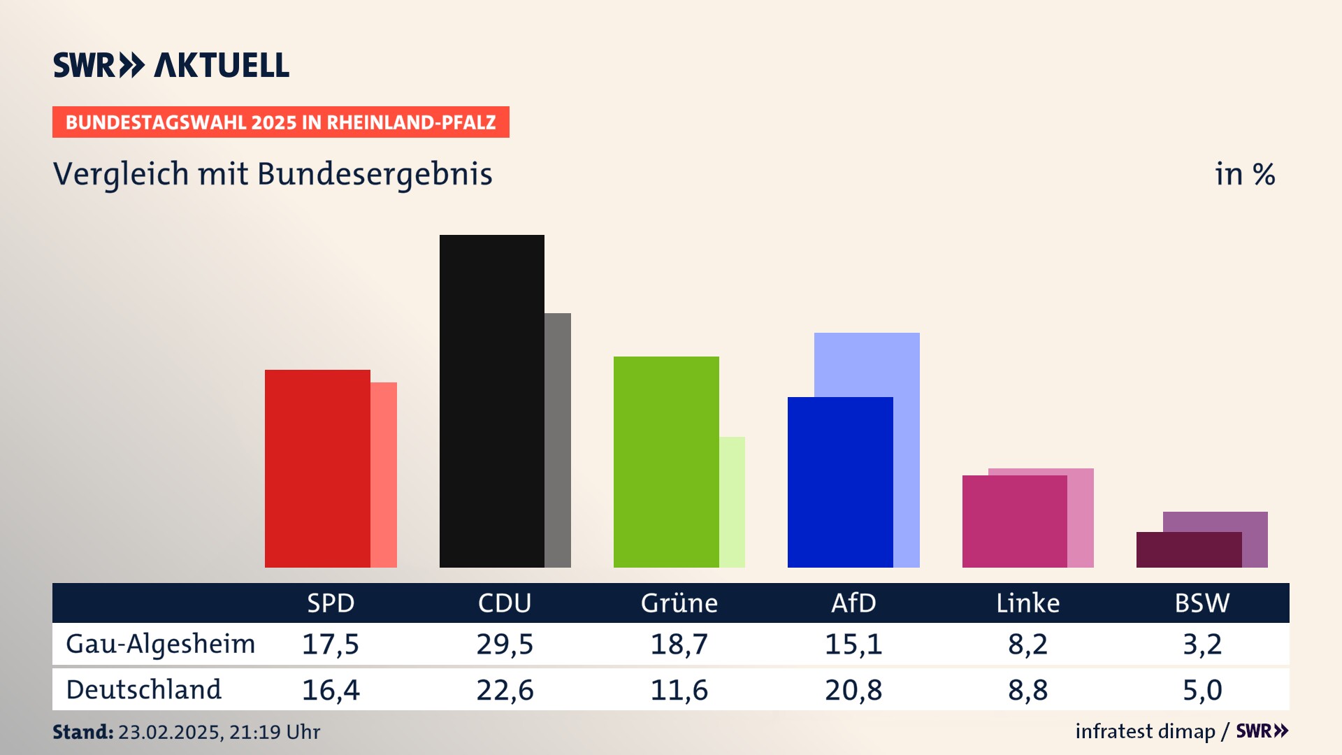 Ergebnis der Bundestagswahl 2025 für Gau-Algesheim