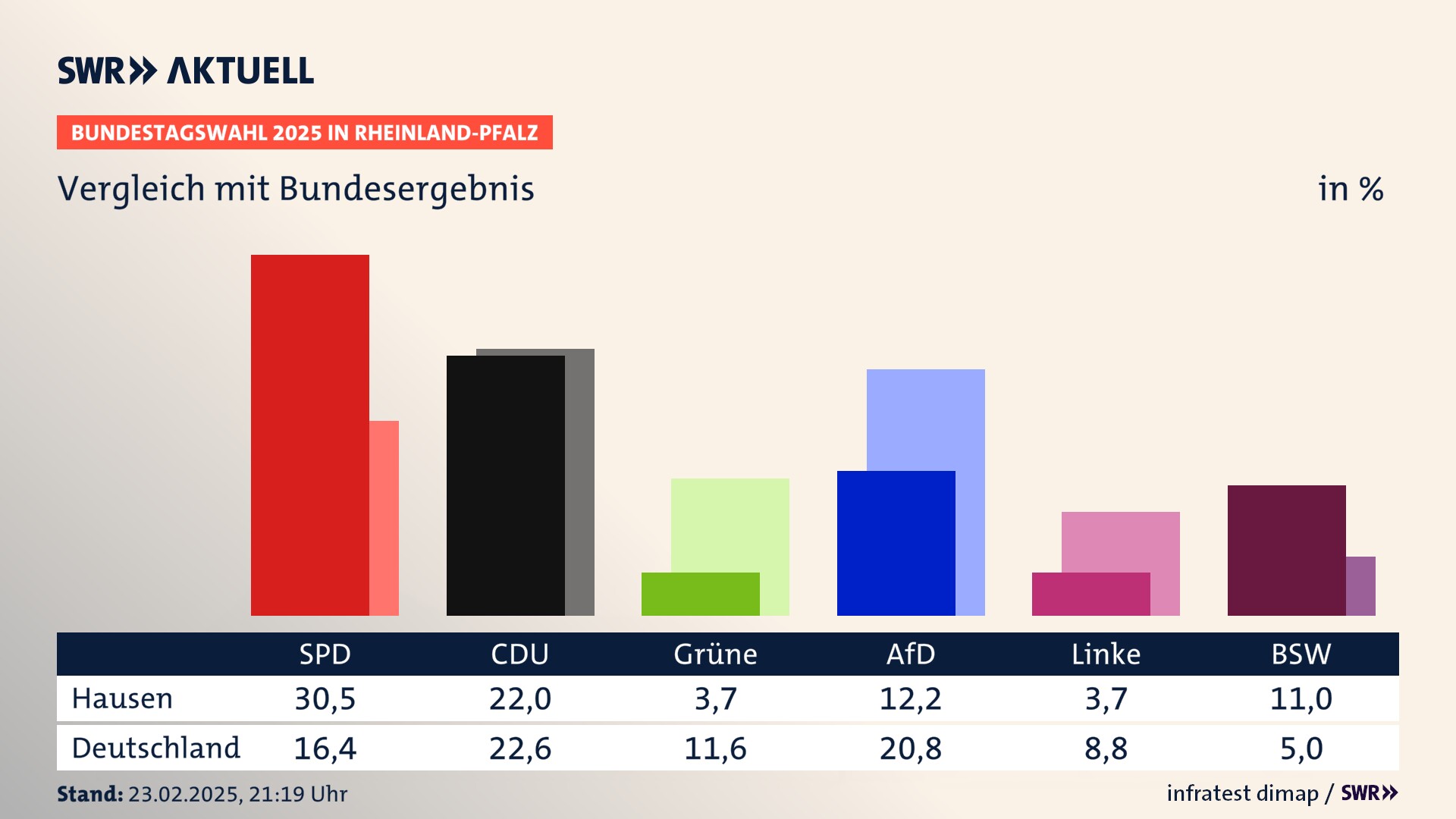Ergebnis der Bundestagswahl 2025 für Hausen