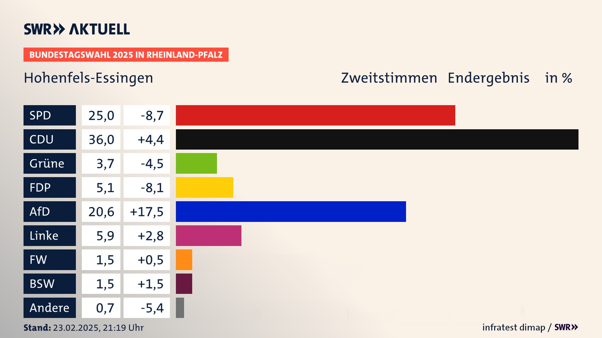 Ergebnis der Bundestagswahl 2025 für Hohenfels-Essingen