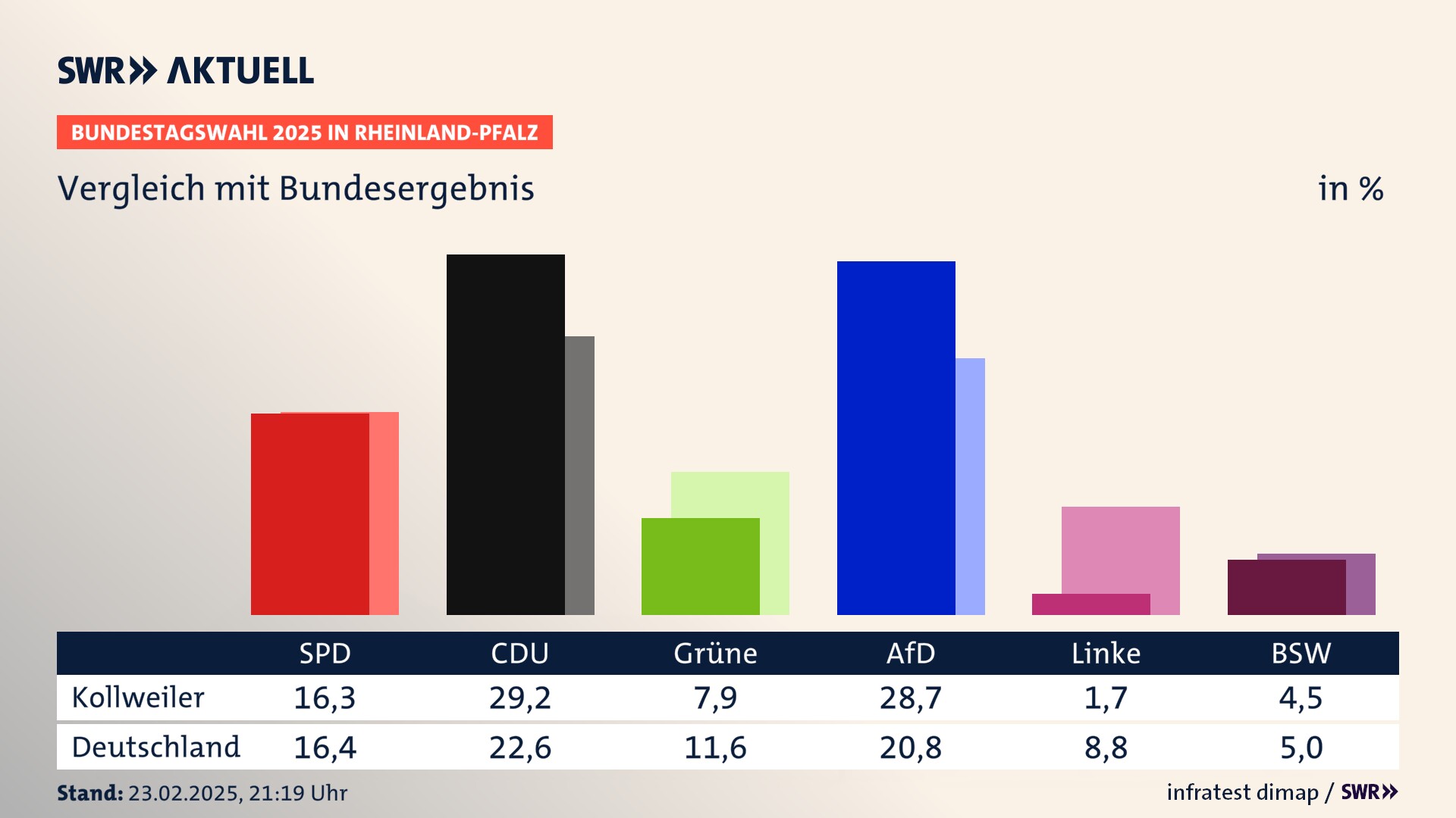 Ergebnis der Bundestagswahl 2025 für Kollweiler