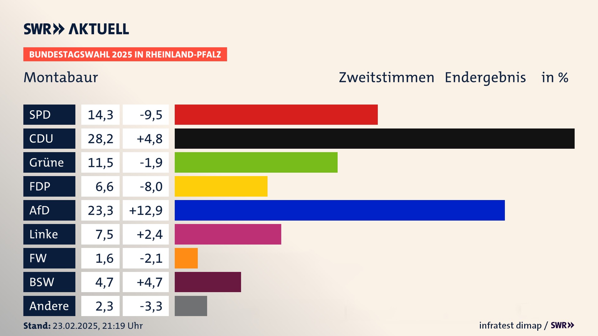Ergebnis der Bundestagswahl 2025 für Montabaur