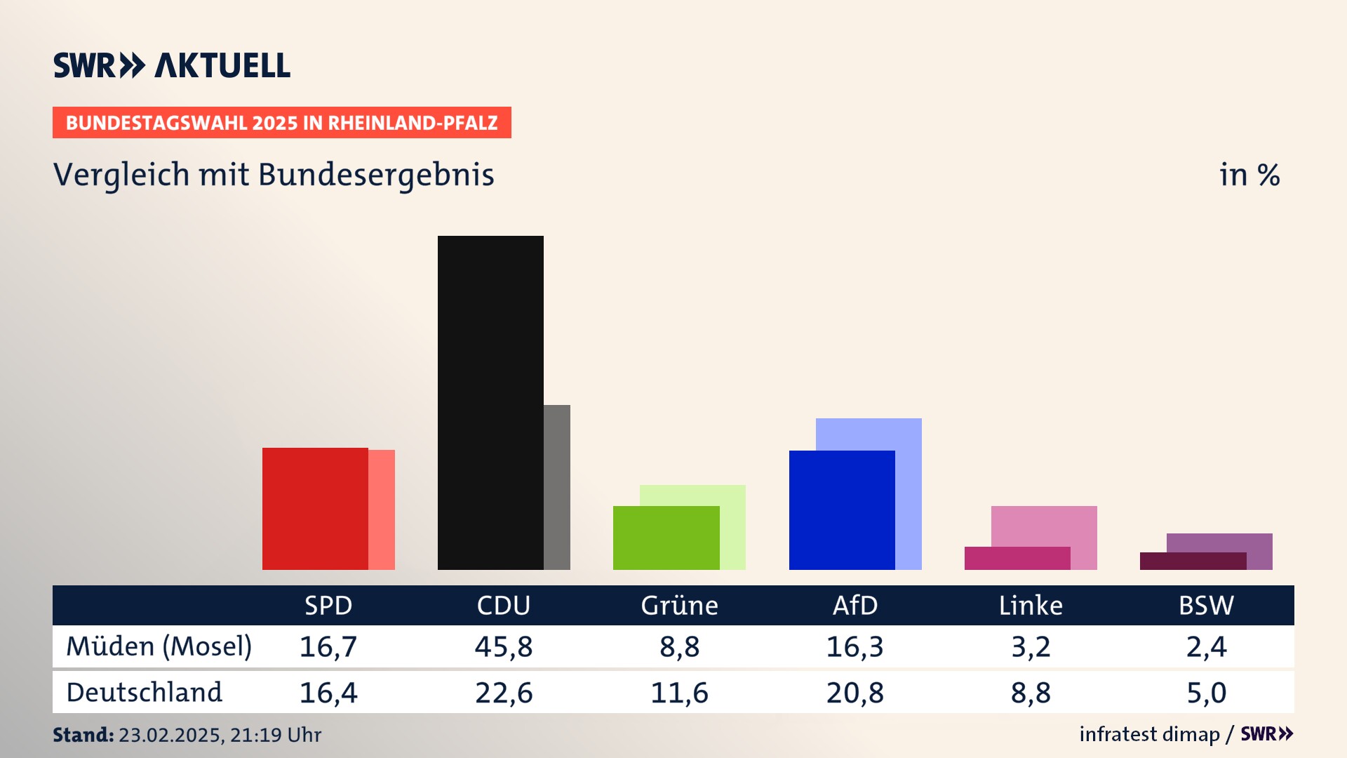Ergebnis der Bundestagswahl 2025 für Müden (Mosel)