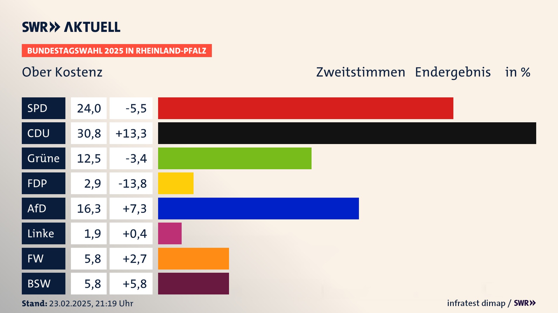 Ergebnis der Bundestagswahl 2025 für Ober Kostenz
