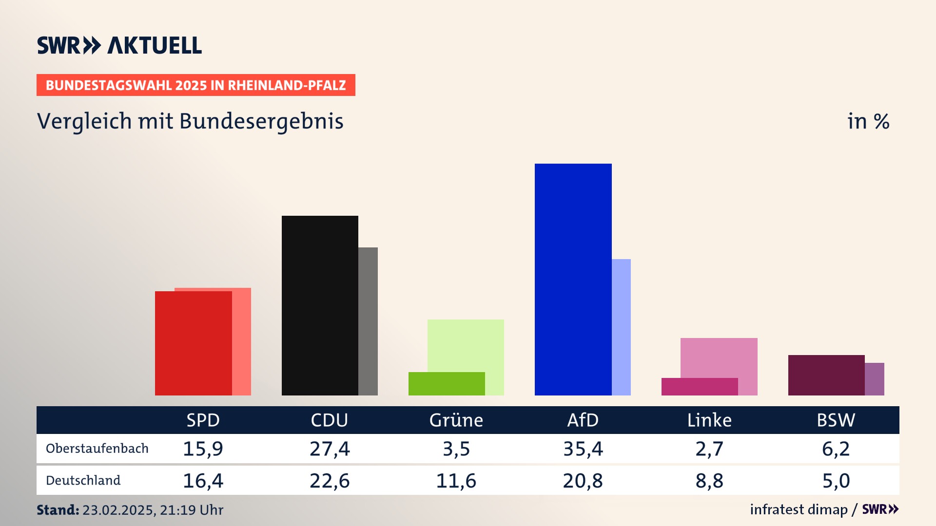 Ergebnis der Bundestagswahl 2025 für Oberstaufenbach
