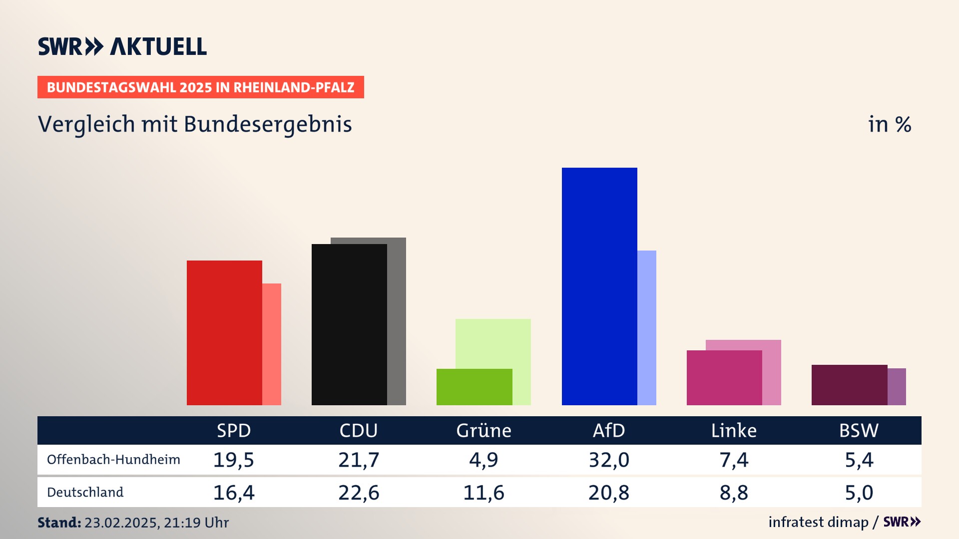 Ergebnis der Bundestagswahl 2025 für Offenbach-Hundheim