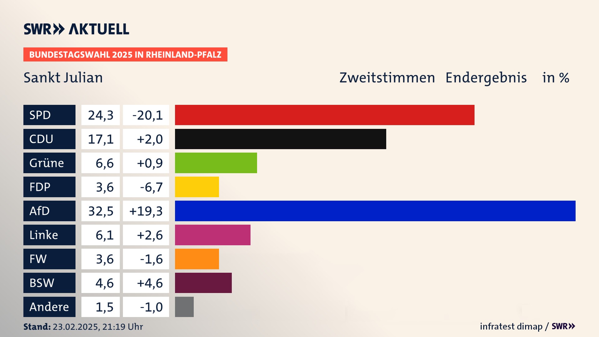 Ergebnis der Bundestagswahl 2025 für Sankt Julian