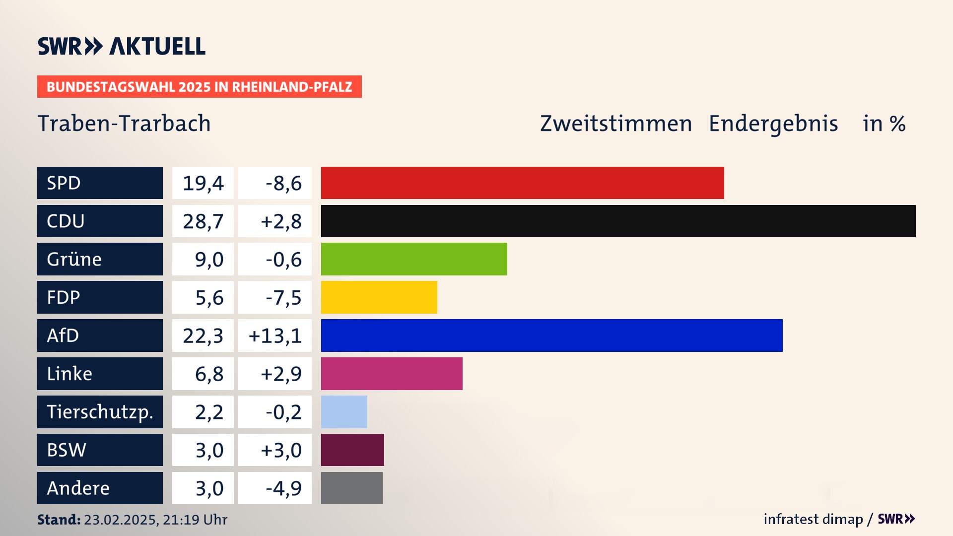 Ergebnis der Bundestagswahl 2025 für Traben-Trarbach
