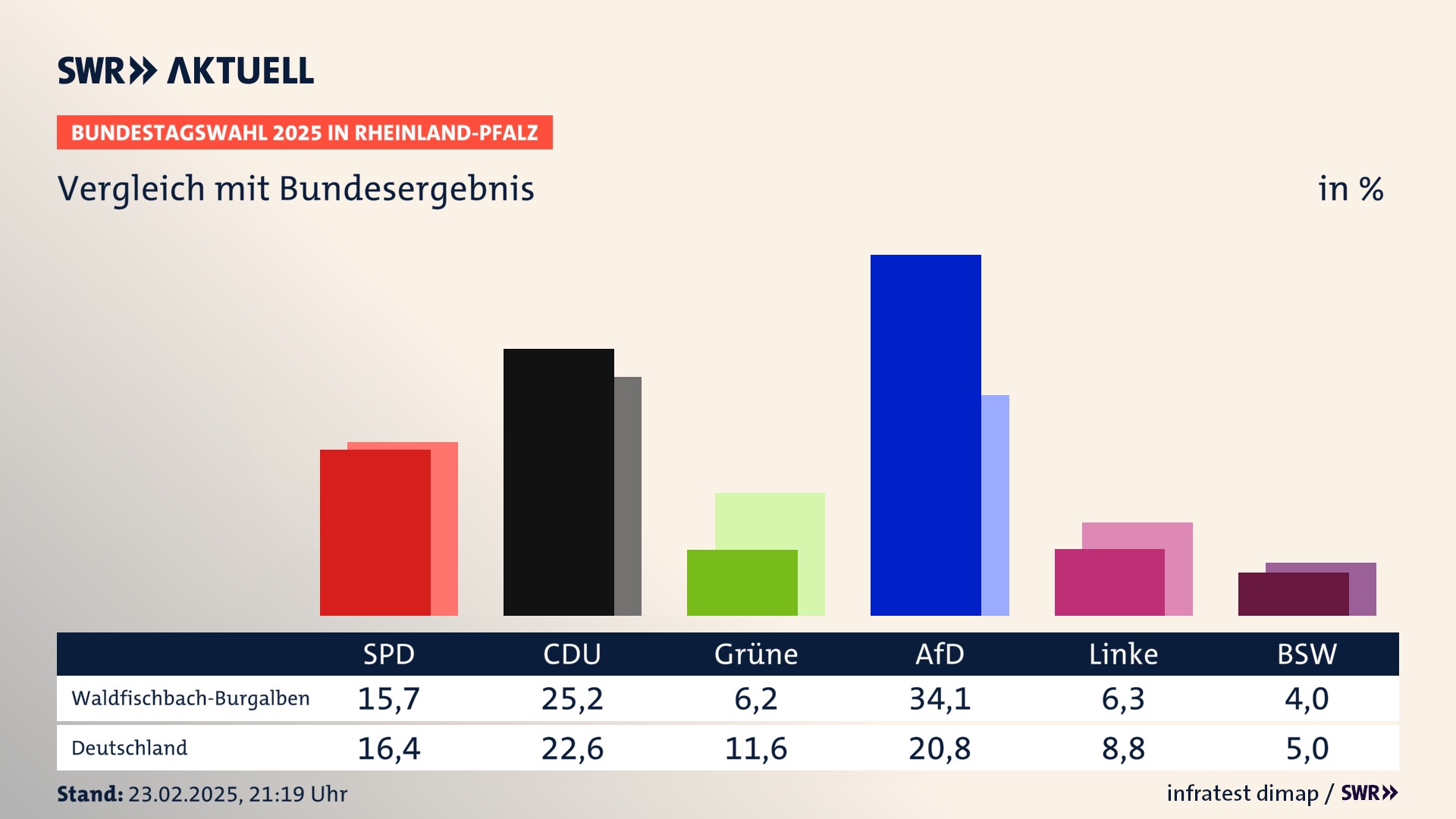 Ergebnis der Bundestagswahl 2025 für Waldfischbach-Burgalben