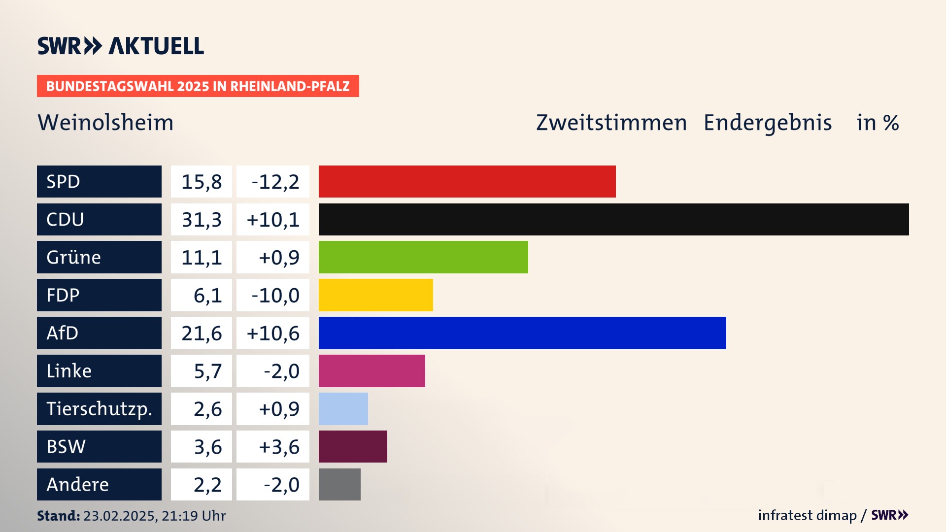 Ergebnis der Bundestagswahl 2025 für Weinolsheim